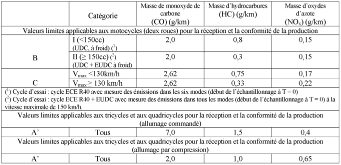 - dont la cylindrée du moteur est inférieure ou égale à 50 cm3; pour les moteurs à allumage commandé (positif).