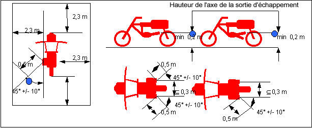 | Toutes les dimensions sont indiquées en centimètres | Feu de route | Feu de croisement | Feu de position avant | Feu de position arrière | Feu stop | Feu d'éclairage plaque | Catadioptre arrière |