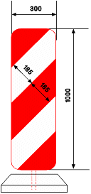 Bandes alternées rouges et blanches (Dimensions en millimètres)