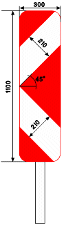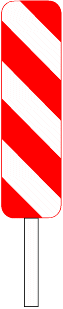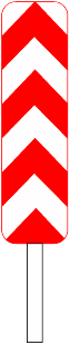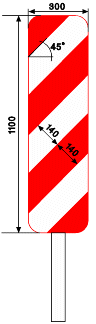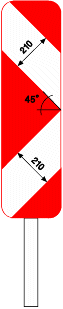 8.2. Un signal D1 d'un diamètre minimal de 0,70 m, dont la flèche est inclinée à environ 45° vers le sol, est placé du côté où la circulation est autorisée.