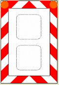 Si le conteneur n'offre pas une surface d'au moins 1,00 m2 divisée en bandes ou si la hauteur de ces bandes est inférieure à 0,50 m, un panneau d'au moins 0,50 m de hauteur et d'une largeur approximativement égale à celle du conteneur, revêtu des mêmes bandes alternées, est fixé audit conteneur.