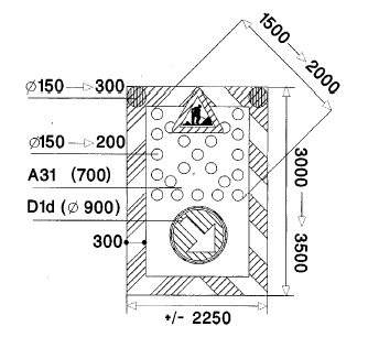 b) Le signal A31 est placé à 150 m au moins du chantier. Si la disposition des lieux le permet, un guidage est aménagé à partir de ce signal.