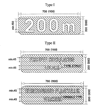 • sur les autoroutes, les signaux du modèle F79 à F85 sont placés à 1.500 m et répétés à 750 m. Ces signaux peuvent être incorporés dans le dispositif du type I de l'annexe 3 au présent arrêté. Ils ne doivent pas être répétés à gauche de la chaussée.
