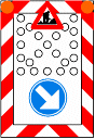 • le dispositif de l'annexe 4 au présent arrêté peut être remplacé par un véhicule équipé conformément à l'article 7.1.1° du présent arrêté. Si une partie au moins du chantier se trouve sur la chaussée, un signal D1, dont la flèche est inclinée à environ 45° vers le sol, est placé pour indiquer la direction obligatoire.