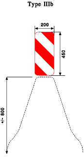 • soit par une séparation physique alternativement de couleur rouge et blanche ou sur laquelle des dispositifs du type III de l'annexe 2 au présent arrêté sont apposés.