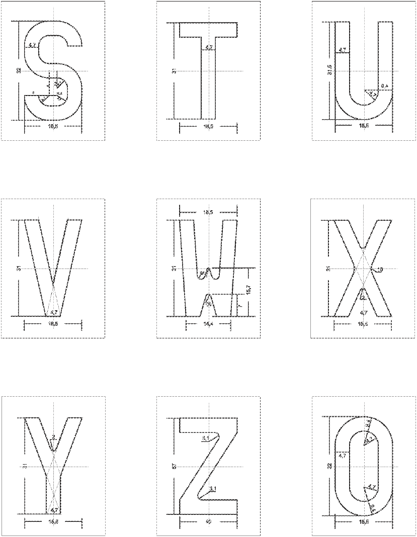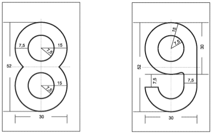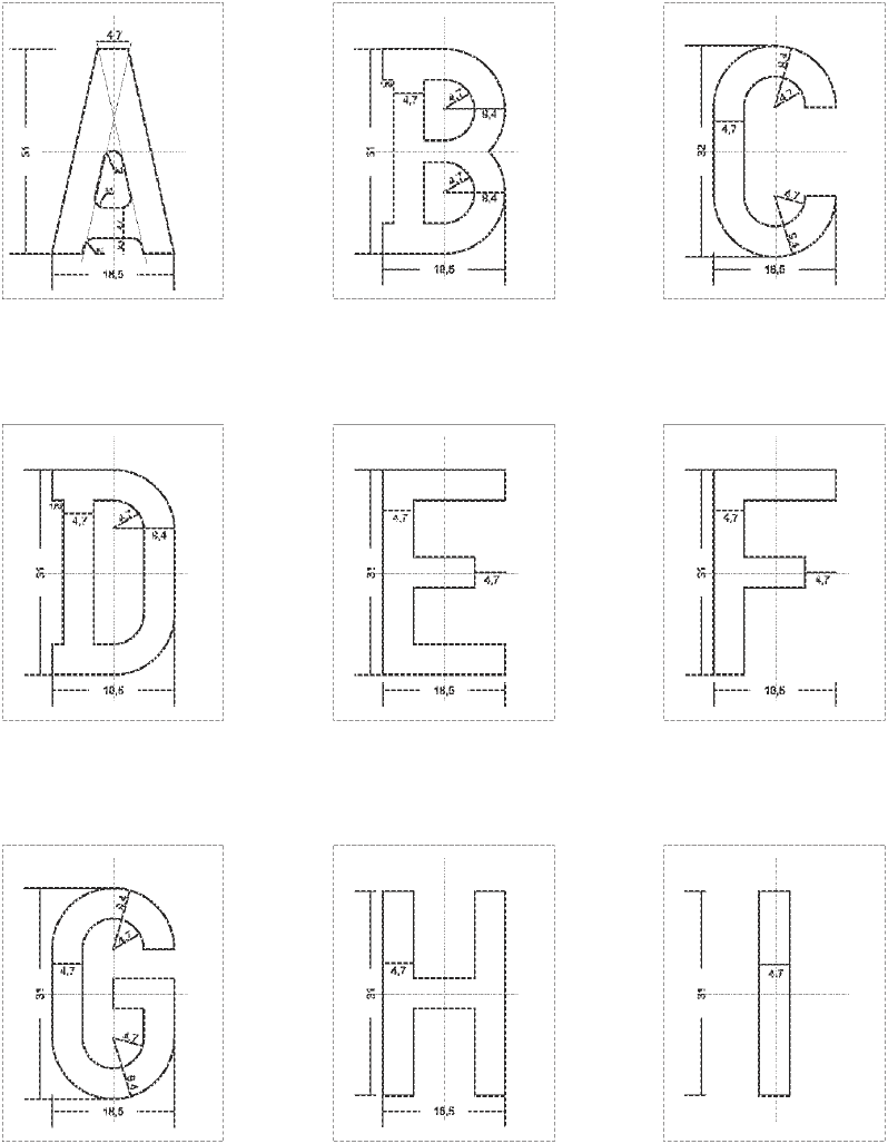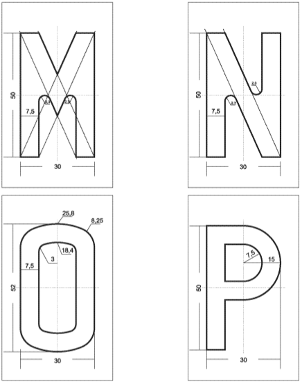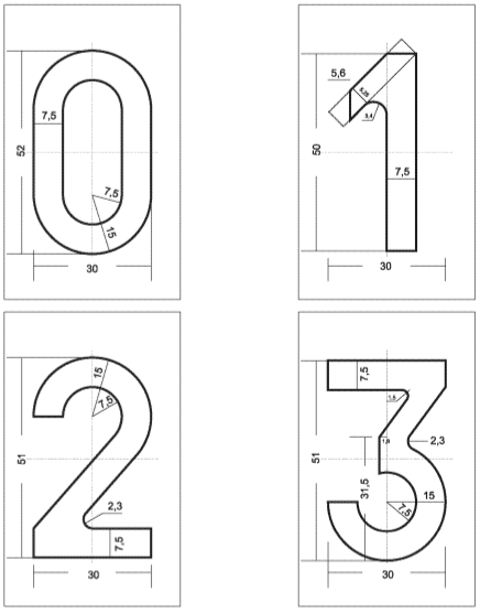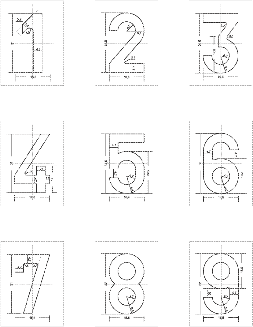 Tolérances: hauteur et largeur des caractères +/- 0.5 mm