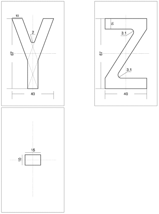 Tolérances: hauteur et largeur des caractères - 0 mm, + 2 mm