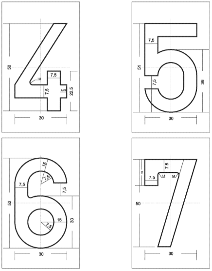 Le liseré a une largeur de 5 millimètres. L’inscription, le sceau et le liseré sont en relief d’un millimètre au moins par rapport au fond de la marque d’immatriculation. L’inscription se compose de caractères droits, normalisés dont la forme et les dimensions sont définies à l’annexe 1ère.