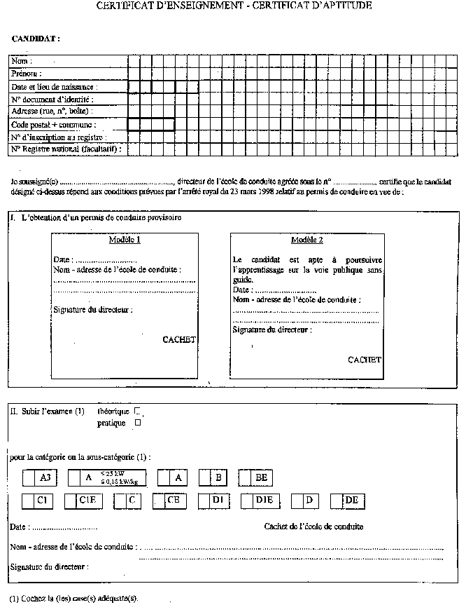 La demande de permis de conduire provisoire visée à l'article 7 du même arrêté est conforme aux modèles qui figurent aux l'annexes 2, 3 et 4.