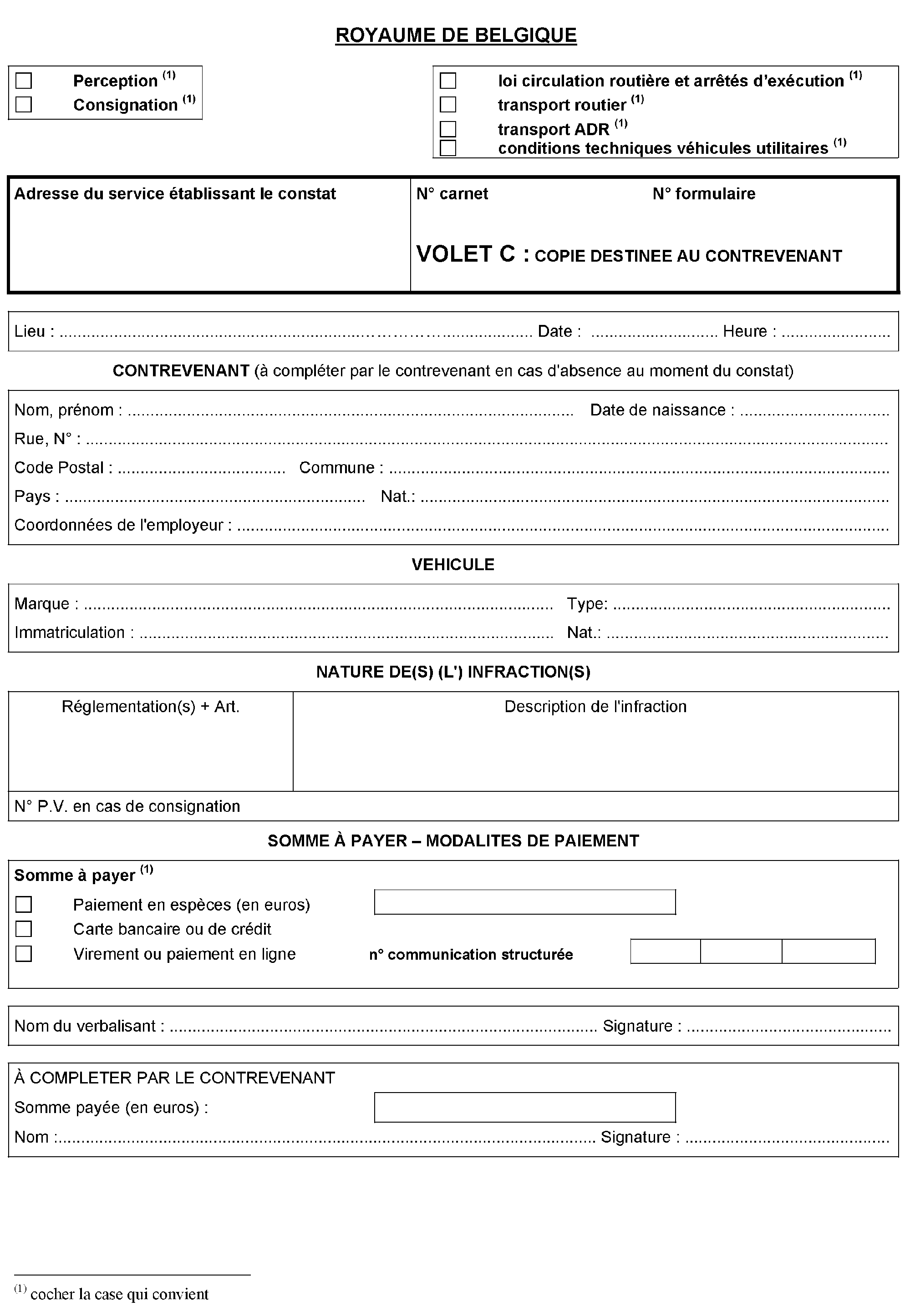 - le volet C est remis au contrevenant.
