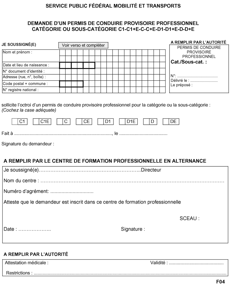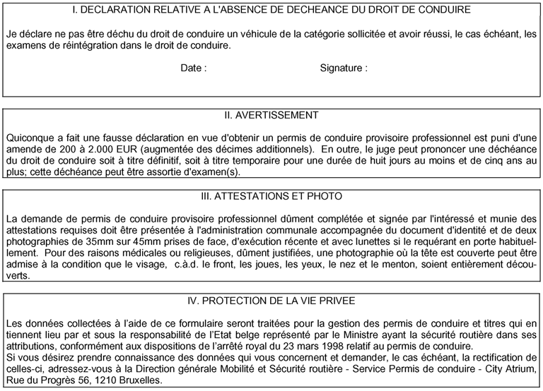 - Annexe 3. Demande d'un permis de conduire provisoire professionnel.