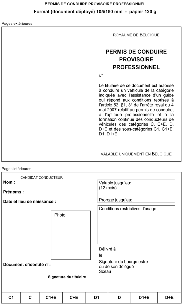 - Annexe 2. Permis de conduire provisoire professionnel.