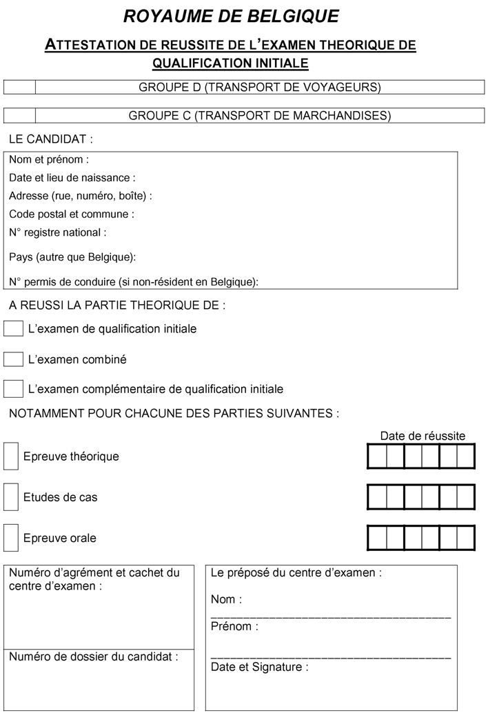 - Annexe 4. Attestation de réussite de l'examen théorique de qualification initiale.
