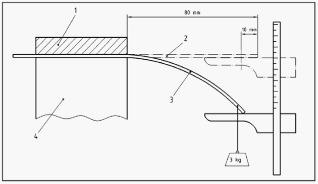 Après 60 secondes suivant les conditions de l'essai décrit en-dessous, la déflexion maximale ne doit pas dépasser 25 mm.
